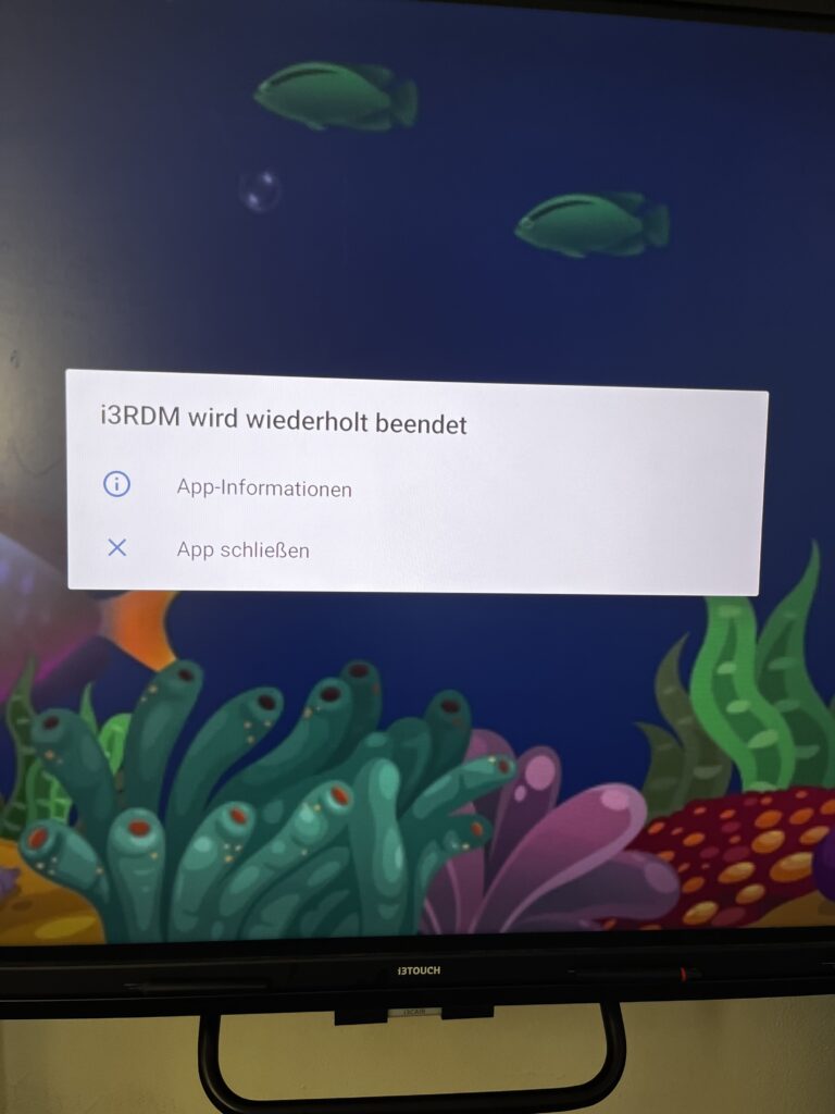 Betroffen ist die i3RDM Client Version 3.8.0 (das kann am Display geprüft werden). Wir haben gerade erfahren, dass i3 ein Notfallupdate auf 3.8.1 herausgegeben hat. Nach ersten Tests scheint der Fehler behoben zu sein. Das Update sollte sich automatisch installieren.